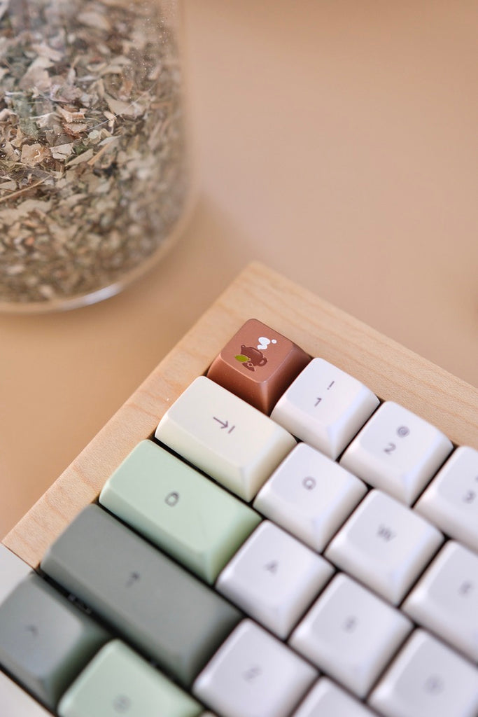 Zen Keycaps are a love letter to cozy mornings, quiet focus, and the earthy rituals that bring us peace. Designed by Maisy Leigh and brought to life in collaboration with Osume, this set is inspired by tea, bonsai plants, soft light, and slow-living.