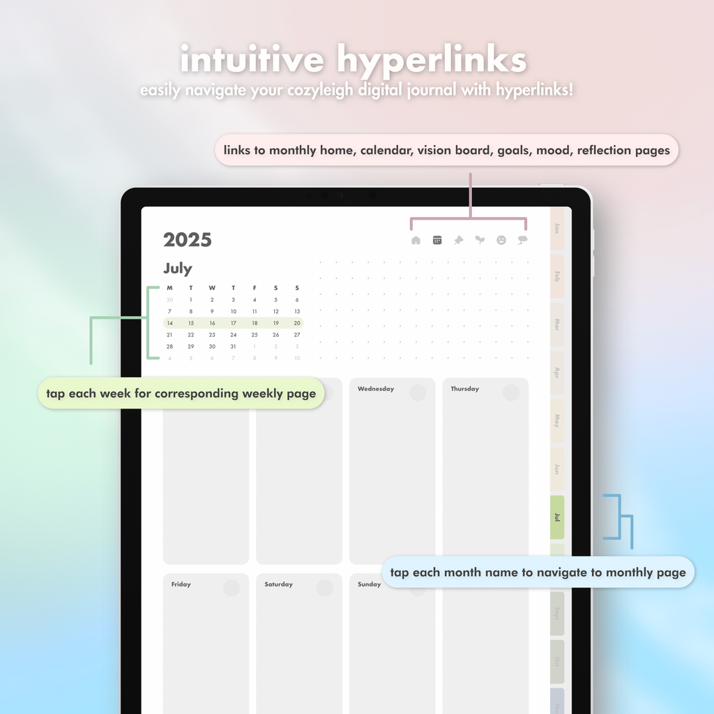 Ready to make 2025 your most intentional year yet? Add the Cozyleigh Digital Planner to your cart and start your journey today!