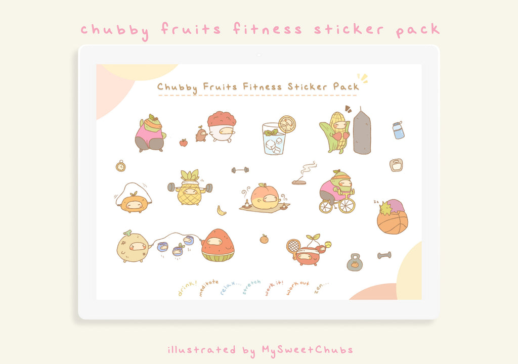 Chubby Fruits Digital Sticker Pack illustrated by MySweetChubs. Hand drawn and cute stickers to use on your Goodnotes and other digital planners! ✨
